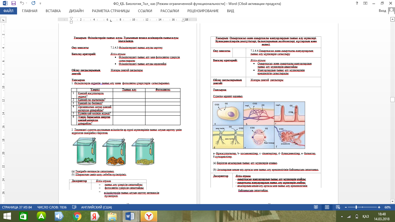 Сабақ жоспар "Заттар тасымалдануының тірі ағзалардың тіршілік әрекеті үшін маңызы" 7 сынып