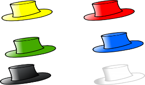 Сабақ бойынша кері байланыс береді. Қызыл қалпақ - Бүгінгі сабақ бойынша көңіл – күй, сезімін білдіреді. Ақ қалпақ - бүгінгі сабақтан алған білімін, нені біліп, үйренгенін айтады. Сары қалпақ - сабақтың жақсы, ұтымды тұстарын айтады. Қара қалпақ - сабақтың сәтсіз тұстарын айтады. Жасыл қалпақ - сабақ бойынша өз ойын, тағы нені жетілдіру керек, идея, ұсынысын айтады. Көк қалпақ - қорытынды пікір, ойларын айтады. |