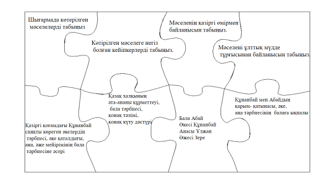 ЕББҚ оқушысы «Пазл» әдісі бойынша берілген ақпараттардың сәйкестігін табады.