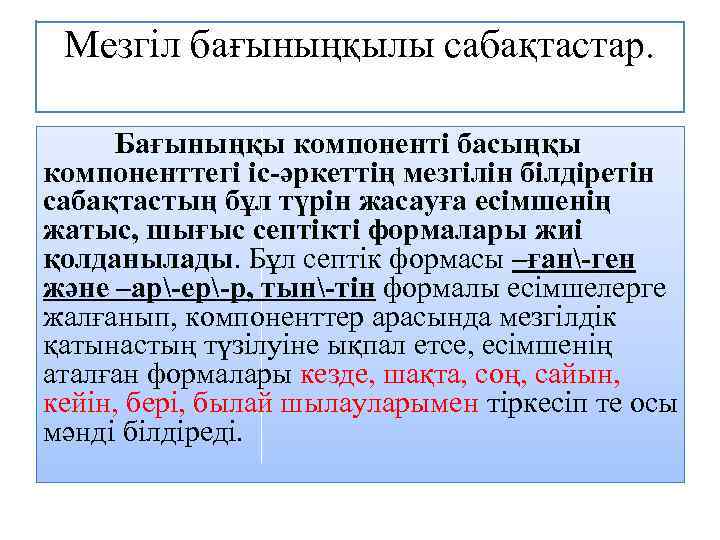 9.2.7.1 ғаламтор, энциклопедия, газет-журналдар, оқулықтар, ғылыми еңбектерден алынған деректерді дәлел ретінде қолдану, авторына сілтеме жасау; 9.4.4.3 сабақтас құрмалас сөйлемдердің мағыналық түрлерін ажырата білу, түрлендіріп қолдану; |