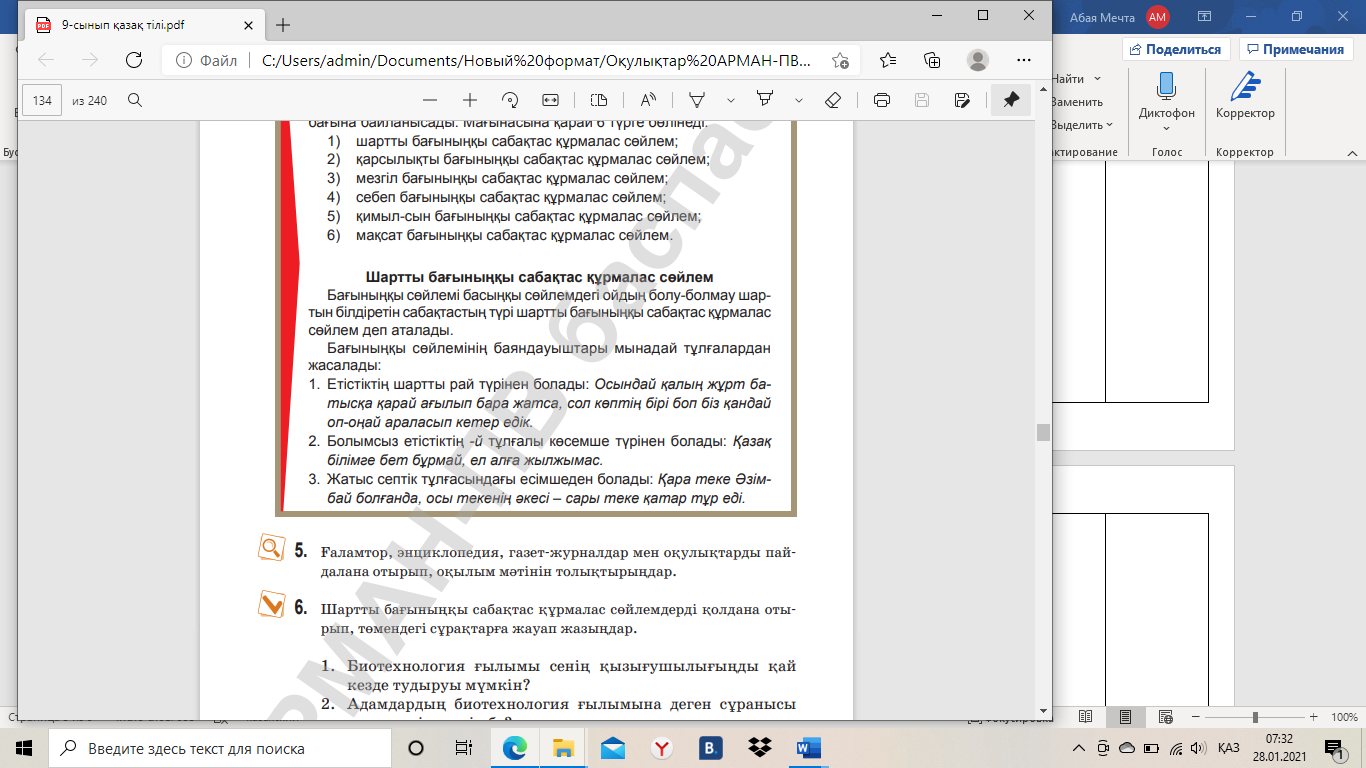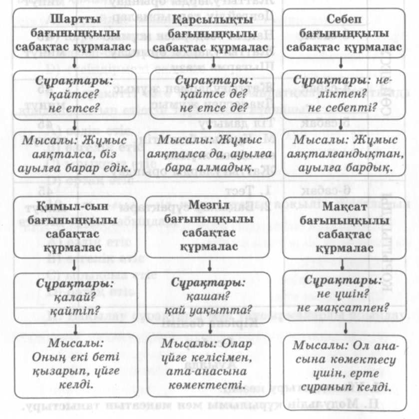 9.2.7.1 ғаламтор, энциклопедия, газет-журналдар, оқулықтар, ғылыми еңбектерден алынған деректерді дәлел ретінде қолдану, авторына сілтеме жасау; 9.4.4.3 сабақтас құрмалас сөйлемдердің мағыналық түрлерін ажырата білу, түрлендіріп қолдану; |
