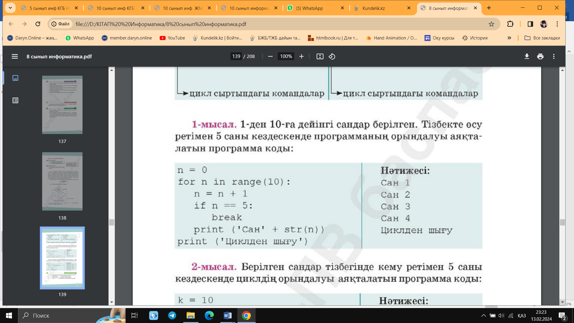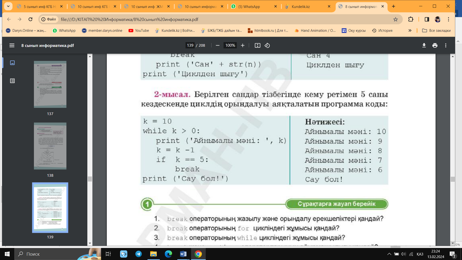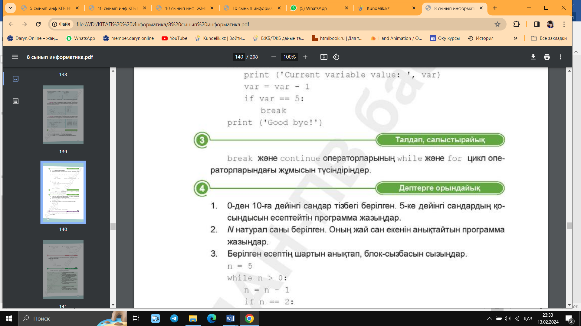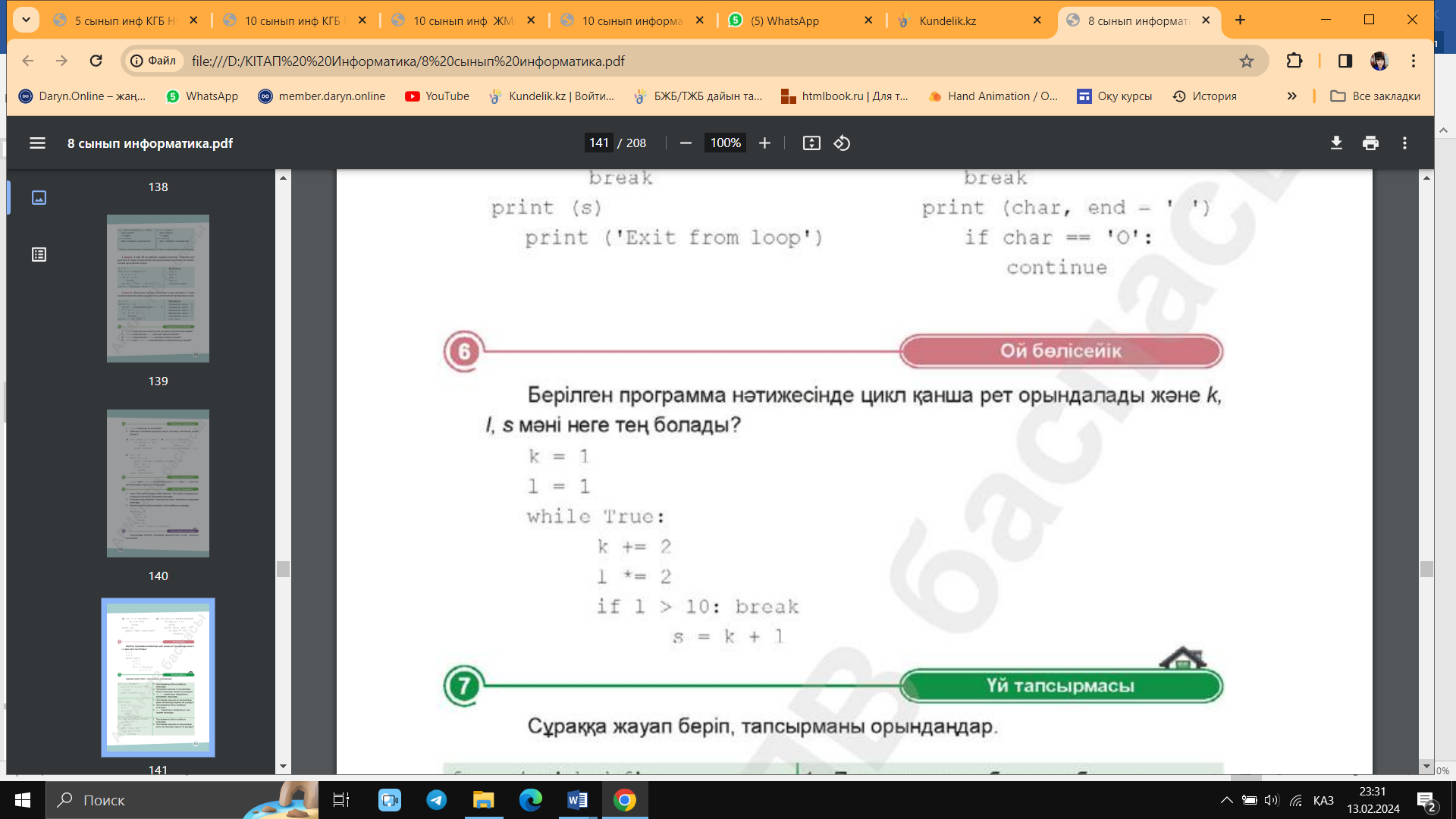 Информатика. 8-сынып оқулық./ Г.И.Салғараева А.А.Бекежанова Ж.Б.Базаева – Нұр-Сұлтан: «Арман-ПВ» баспасы, 2021.-138-141 бет |