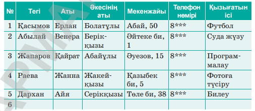 -кестелік редакторде оқушылар деректер базасын құpу;