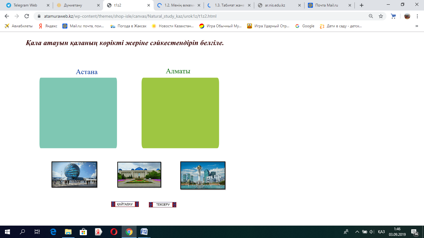 қалалар, өзен-көлдерді, тұрғылықты жерін таба біледі. Оқушыларда