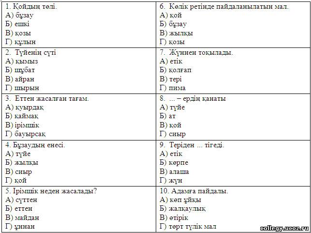 3 – тапсырма 10 сұрақтан тұратын тест беріледі.