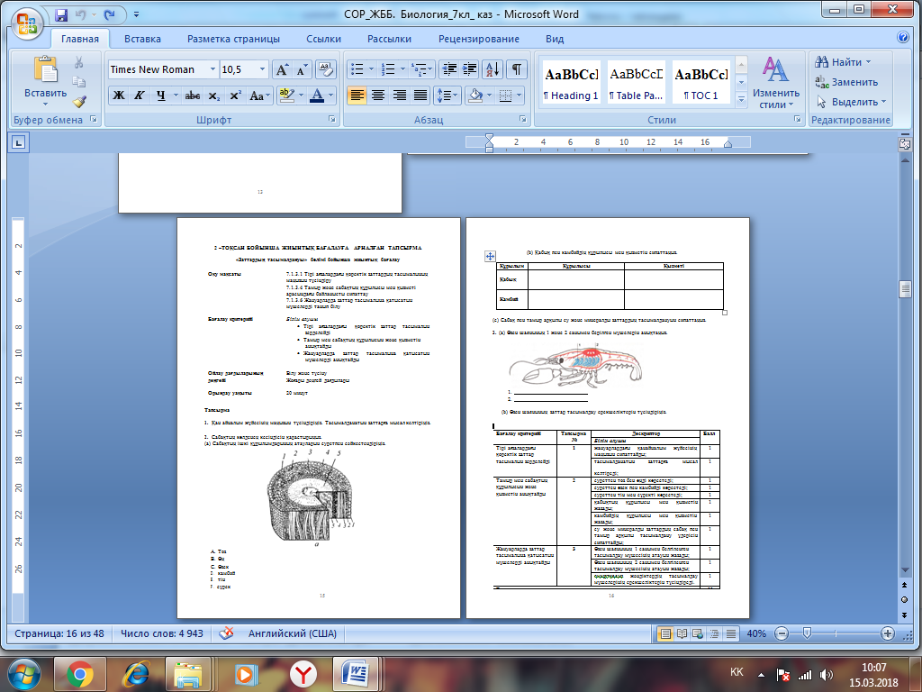 7.1.3.6 - жануарларда заттар тасыма-лына қатысатын мүшелерді танып білу |