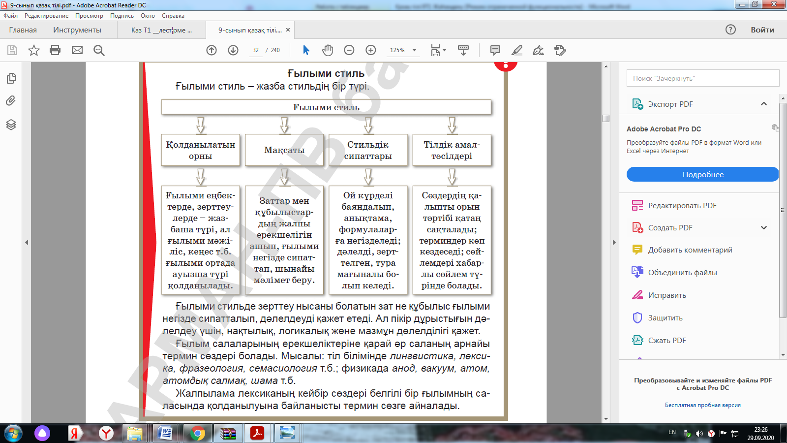 3-тапсырма. Мәтіннен ғылыми стильге тән тілдік ерекшеліктерді табыңдар. Әртүрлі ғылым саласына тән сөздерді топтап жазыңдар.