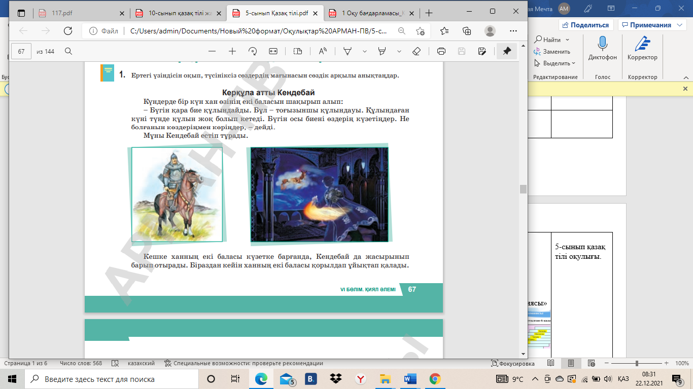 Сабақ жоспары: «Керқұла атты Кендебай» ертегісі 5 сынып
