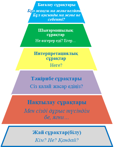 Бекіту. Бүгінгі тақырып бойынша оқушылар интерпретациялық, шығармашылық сұрақтар және бағалау сұрақтарын құрастырады.