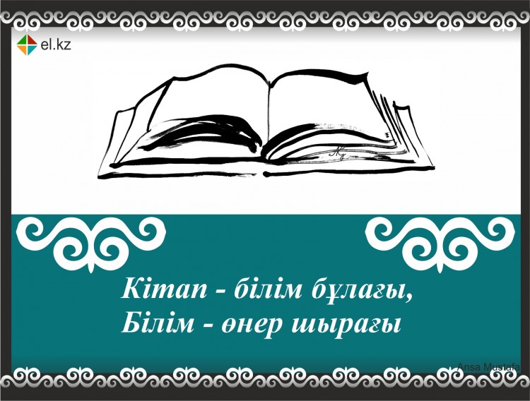 ішінде қазақ тілінде жазылған кітапқа баулу. **Кітап оқымай ми толмайды, көз көрмей, көңіл тыңбайды. |