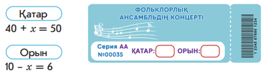 Көңіл күйлерін көтеріп отыру Дескриптор: Оқушылар берілген математикалық жазбалардың теңдеу айтады. Белгісізді қалай табуға болатынын түсіндіреді