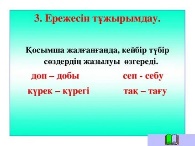 Дескриптор: Сөздерді көшіріп жазады-1б Түбір сөздің жазылуын өзгерткен қосымшаны атайды-1б Керемет!