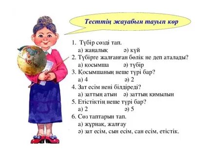 Тамаша! Дескриптор: Сұрақтарға жауап береді-1б Қосымшалар туралы ұғымы бар-1б Түбірлес сөздер туралы біледі-1б Тамаша!