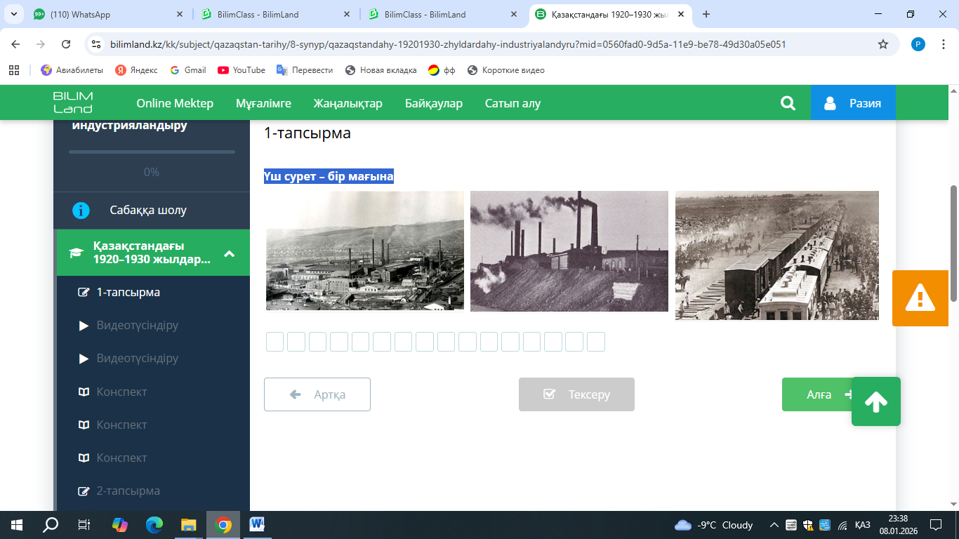 Қазақстандағы индустрияландырудың жүру барысы мен ерекшеліктерін анықтап, нәтижесін талдайды |