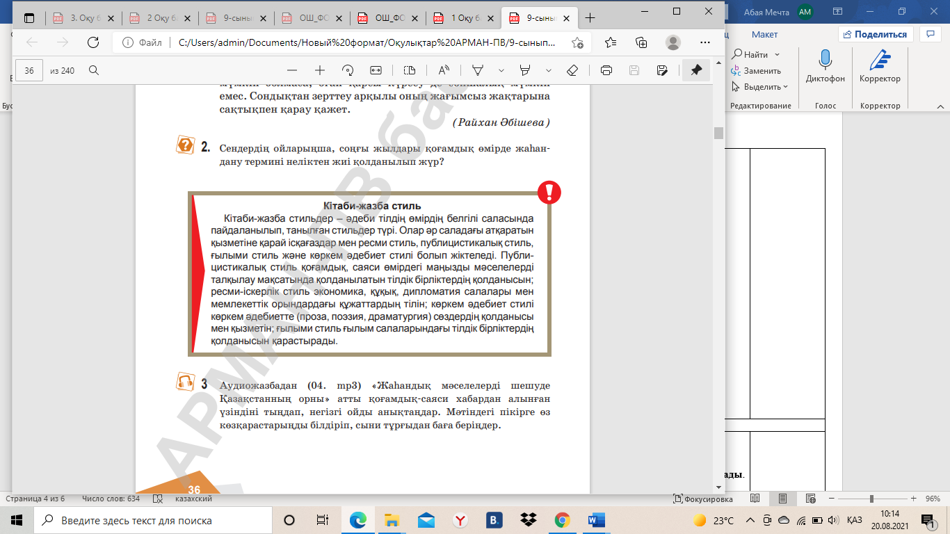 4-тапсырма. Кітаби-жазба стильдің бір түрін тыңдап, сол стильде қазіргі заманғы жаһандық мәселелер туралы 5 сөйлем жазыңдар.