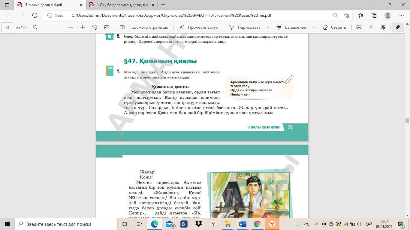 Тапсырма. Мәтінді оқимыз.
