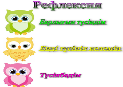 Сабақтың соңы Ой толғаныс. Рефлексия 7 мин.