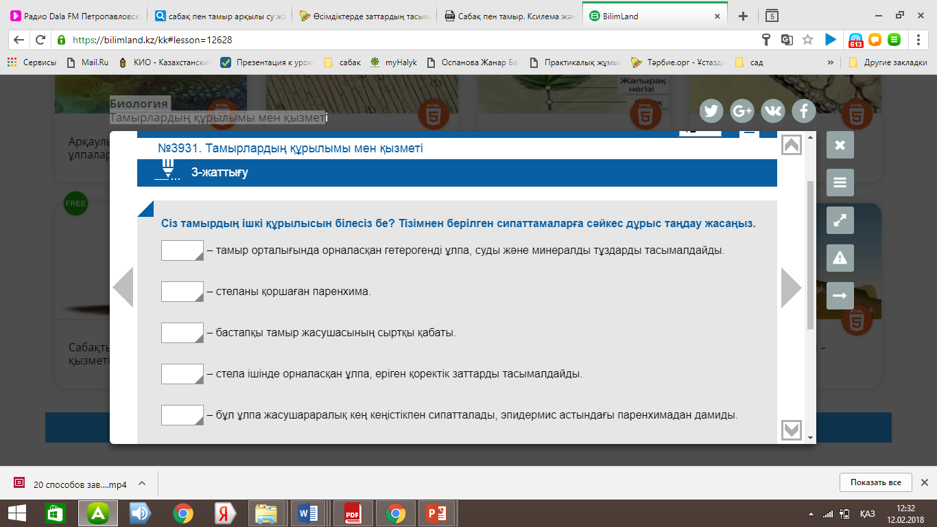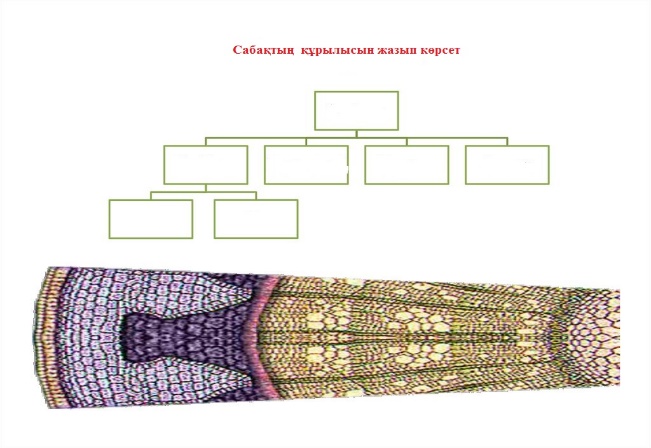 1. Сабақ пен тамырдың ішкі құрылысының құрылымдық компоненттерін біледі; 2. Сабақ пен тамырдың құрылымдық компоненттерінің маңызын түсінеді; 3. Сабақ пен тамырдың құрылымдық компоненттерінің қызметтерін дұрыс сипаттай алады. |