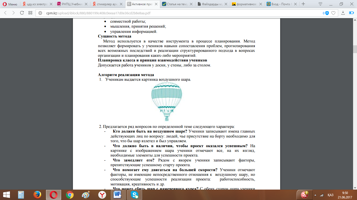 Жаңа сабақ 1.Топтық жұмыс .Мәтін таратылады. «Әуе шары» әдісі