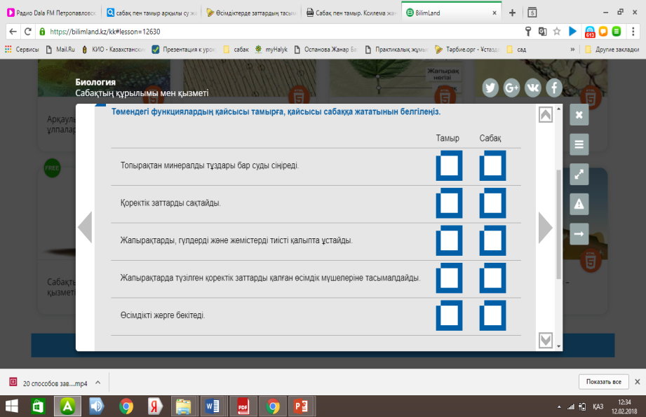 ҚБ: Смайликтер арқылы. Бейне баян «Сабақтың ішкі құрылысы», «Сабақ арқылы заттардың тасымалдануы»,«Тамырдың алғашқы құрылысы», «Тамырдың құрылы мен қызметі» суреттермен танысады. Сіздер осы алған білімдеріңді ары қарай толықтырғыларың келе ме? –деп оқушылардың қызығушылығын арттырып алып, топтарға бөлу. Топтарға бөлу.