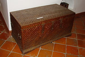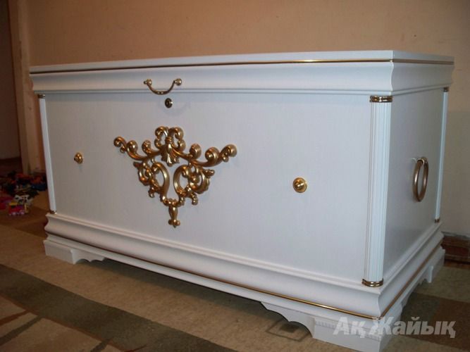 Сандықшаның жасалу технологиясы: 1 кезең Өлшемі бойынша бет жағын және артқы жағын,екі жанын жасайды. 2 кезең .Өлшем арқылы қақпақтың екі жанын бірдей жасайды. 3 кезең Сандықшаның бет жағына түсетін оюды қағаздан ойып,қаңылтырға түсіреді.Қаңылтырды өлшемі арқылы қию. 4 кезең .Шеку шегесі (чекан) және балғамен алдын ала қаңыл-тырға түсірілген өрнекті бедерлеп шеку,түзету. 5 кезең 1,2,3,4 кезеңде жасалған бөлшектерді құрыстырады. Алдымен қорабы мен қақпағын жинап,шегелеп,содан кейін қораптың бет жағына чеканка орнатады.Екі бүйіріне тұтқа қағып,топсаларымен кекілін бекітеді. |