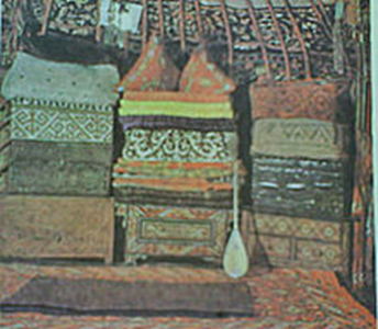 1)Ағаштың тарихы жайлы түсінік беру. 2)Ағаштан жасалатын үй жиһаздары туралы. 3)Қолөнер бұйымдарының өрнек мотивтері. 4)Сандықтың тарихы,түрлері /қолсандық,жағлан,әбдіре/ 5)Сандықшаның жасалу ерекшелігі,композициялық көркемдеу стилі. Оқушылар!Бүгін біздер сабақта үй жиһазы-сандықты /сандықша/ жасап үйренеміз.Ежелден қазақ халқы үй жиһазын ағаштан жасаған.Қазақстанның мына аймақтарында ағаштың түрлері бар:Солтүстік Шығыста,Алтай төңірегін-де қайың,шырша,қарағай; Оңтүстікте терек, жеміс ағаштары; Батыста қара-ғай,қайың,жөке.Ағаш ұқсатумен айналысатындарды үйші,оймашы,балташы, тоқушы деп шартты түрде төртке бөлген.Ағаштың адамзатқа,тұрмыс-тіршілі-гіндегі қолданылатын орнымен қатар ата-бабаларымыз үшін қасиетті де, киелі ағаштың орны бір бөлек екенін байқаймыз. “Ел іші-өнер кеніші” дегендей біздің өлкемізде де ағаштан түйін түйетін небір атақты шеберлеріміз болған.Мысалға,соның бірі жерлесіміз белгілі қолөнер шебері-Айдос Мұратұлы атамыз.Халық шеберлерінің ағаштан жаса-ған,кең тараған бұйымдарының бірі-сандық.Оған киім-кешек т.б. заттарды салуға арналған.Қыз ұзатқанда қыз жасауы сандық болған.Ағаштан жасалған үй жиһаздарының безендіру тәсілдерінің де ерекшеліктері бар.Мысалы: Оңтүстікте бояумен сәндеу,ою жүргізу басымырақ болса,Солтүстік,Орталық, Шығыста түсті металдар мен әсемдеу жиі кездеседі.Ал,Батыста бедерлеп ою ойылып,қосымша түрлі-түсті бояулар жағылып үйлесімді көркемделеді. Қолөнерге бай қазақ халқының үй жиһаздарының ішінде сандықтың ежелден үш түрде жасалып келген киім-кешек,әр түрлі ұсақ-түйек бұйымдар сақтау үшін үлкенді-кішілі қолсандық,жағлан және әбдіре пайдаланған.Үлкен әбдіре-сандықтың ұзындығы 90-100 см,биіктігі мен ені 45-50 см шамасында жұқа қарағай тақтайлардан жасалады.Жағландар әбдіре-сандық сияқты үлкен емес.Оның ұзындығы 60-70 см,ені мен биіктігі 30-35 см шамасында. Қол сандықтарды бойжеткен қыздарға арнап жасатады.Оның көлемі де шағын,ұзындығы 45-50 см,ені 25-30 см,биіктігі 15-20 см шамасында болады. Жасалу ерекшеліктеріне байланысты да әрқилы.Мысалы:ағаштан ойған сандықтар,терімен қапталған жағландар,сүйек сандықтар,жұмсақ қаңылтырмен әсемделген сандықтар.Олардың аяғы болмаған.Қазіргі жағ-дайда сандық жасағанда,жерге қойғанда түбі дымқыл тартпау үшін оның астыңғы төрт бұрышына үйлестіре тақтайдан бұрыштап аяқтар орнатамыз (1-сурет).Екі қапталына екі тұтқа орнатылады және төмендегідей үлгіде жасалы-нады (3-сурет).Тұтқаларды қалың сым темірден немесе қалың қаңылтырдан дайындауға болады.Сандықшаның алдыңғы қабырғасының дәл ортасынан қақпағына кекіл орнатылады.Кекіл сандықшаны құлыптап қою үшін қажет (2-сурет).Жасалынатын сандықшаның қарама-қарсы қабырғалары бірдей болғандықтан,олар бірге дайындалады.Бұл екі беті бірдей сүргіленген қара-ғай тақтайларды бір-біріне қапсырып қағуымыз керек немесе желім жағып желімдеуге болады (4-сурет).Қақпағын екі жерден топсамен (5-сурет) бекітіп, тұтқасы мен кекілін орнатамыз.Сандықшаның даярлама бөлшектері дайын болғаннан кейін 6-суреттегідей етіп,ретімен мұқиаттап қағамыз.Енді сандық-шамыз әзір болғасын, оның бет жағын әсемдеуді жасаушы оқушылардың өзіндік логикалық ойлау ерекшеліктері мен (фантазиясы) шеберліктеріне байланысты.Сонымен,оқушылар,біздер сандықтыңшығу тарихын,түрлерін, оның беті қандай және қалай өрнектелетіні туралы біраз ой қозға