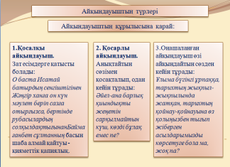 8.2.4.1. Тақырыбы ұқсас ғылыми және публицистикалық стильдегі мәтіндердің тақырыбын, түрлерін ( әңгімелеу, сипаттау, талқылау), құрылымын салыстыра талдау. |