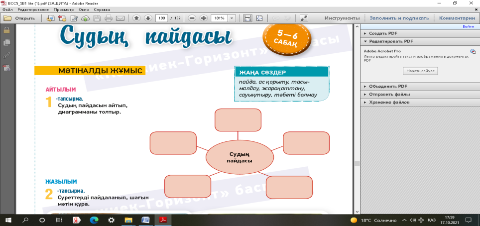 1-тапсырма.Айтылым. Судың пайдасын айтып, диаграмманы толтыр. |