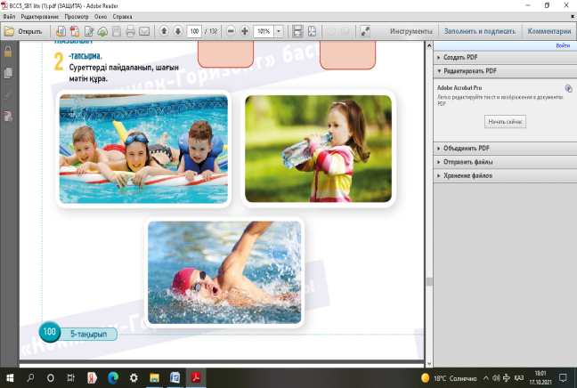 Дескриптор: - берілген суреттер бойынша мәтін құрайды. |