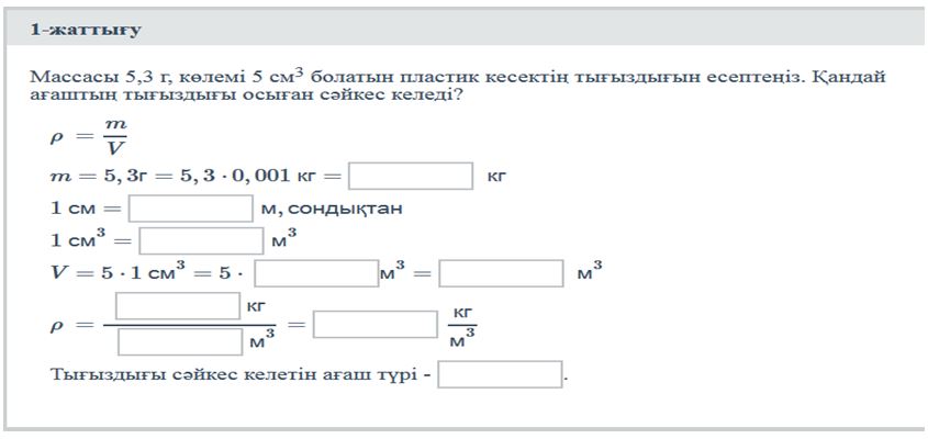 7.2.2.15 – Тығыздықтың формуласын есептер шығаруда қолдану |