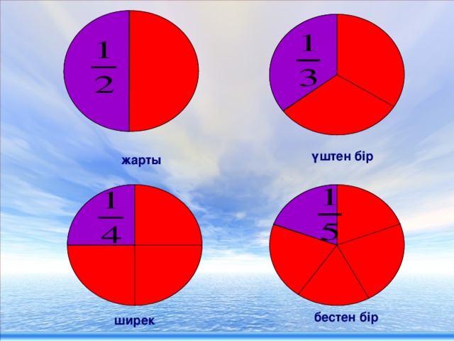 –Бірінші дөңгелек неше тең бөлікке бөлінген? –1/2 бөлігін қалай шығардың?