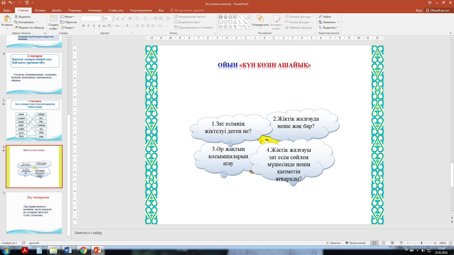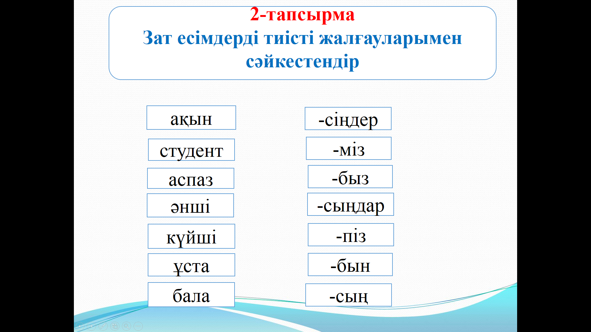 2-тапсырма Зат есімдерді тиісті жалғауларымен сәйкестендір