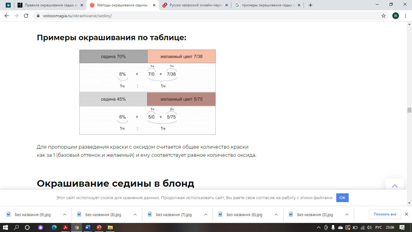 Қосымша жылу реакцияны тездетеді және бұл нәтижені бұрмалауы мүмкін.Алғашқы бояу кезінде экспозиция кем дегенде 30 минут, жарықтандыру кезінде ‒ 50 минутқа дейін болуы керек. Әр түрлі копания бояулары қажетті тондарды алуда біршама ерекшеленеді, сондықтан алдымен бояуды қолдану жөніндегі нұсқаулықпен танысу керек.