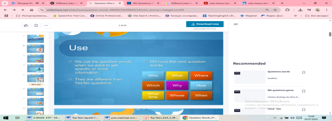 Танымал тақырыптар аясында сұрақтар қою үшін who, what, where, which, whose, how many сұрау есімдіктерін қолдану. |