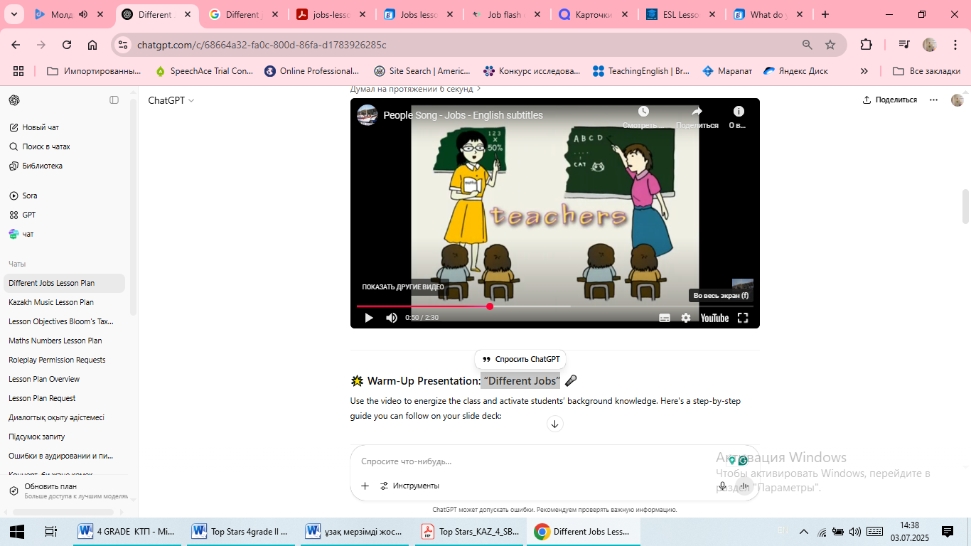 Сабақ тақырыбы: Different jobs 4 сынып