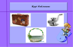 Сабақ соңындағы кері - байланыс. «Тазалық» ойыны түрінде алу. Қатысушыларға бір парақ беріледі. Онда мыналар салынған: Чемодан(суреті) қоқыс жәшігі (суреті) еттартқыш (Суреті)