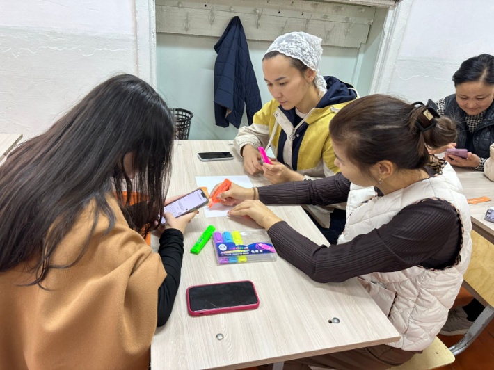 Сұрақтарға жауап бере отырып, қатысушылар өз ойларын белсенді бөліседі. Мұғалімдер топта, телефондарымен практикалық жұмыстарды орындайды. |