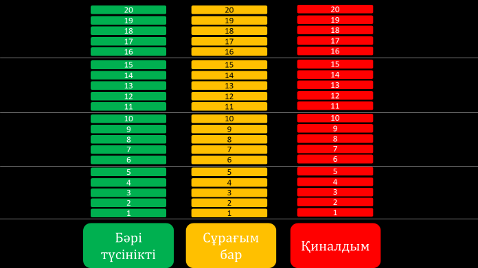 Бүгінгі сабақтан алған білімдерін сабақ бойына орындаған тапсырмасының нәтижесіне қарай жинаған жұлдыздарын санап, анықтайды.