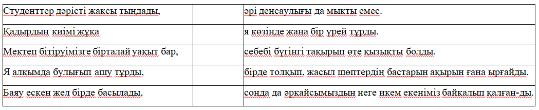 ІІ топ: Сөйлемдердің бірінші сыңарына сәйкес келетін сөйлемдерді екінші қатардан тауып, мағынасына қарай құрастырыңдар