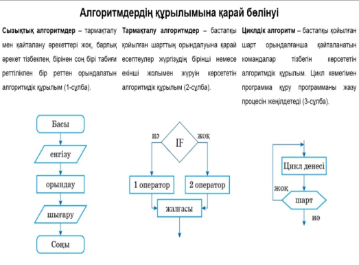1.Оқушылармен амандасу. 2.Сабақтың тақырыбы мен мақсаттарымен таныстыру. 3.Үй тапсырмасын тексеру. Жаңа терминдік сөздер Блок – сызба – Блок-сызба – Flowchart Қайталау алгоритмі – Циклический алгоритм – Loop algorithm Алгоритмді әзірлеу – Разработка алгоритма – Algorithm development |