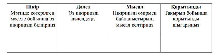 ЕББҚ: 1-тапсырма. Мәтінді оқиды, сұрақтарға жауап береді. |