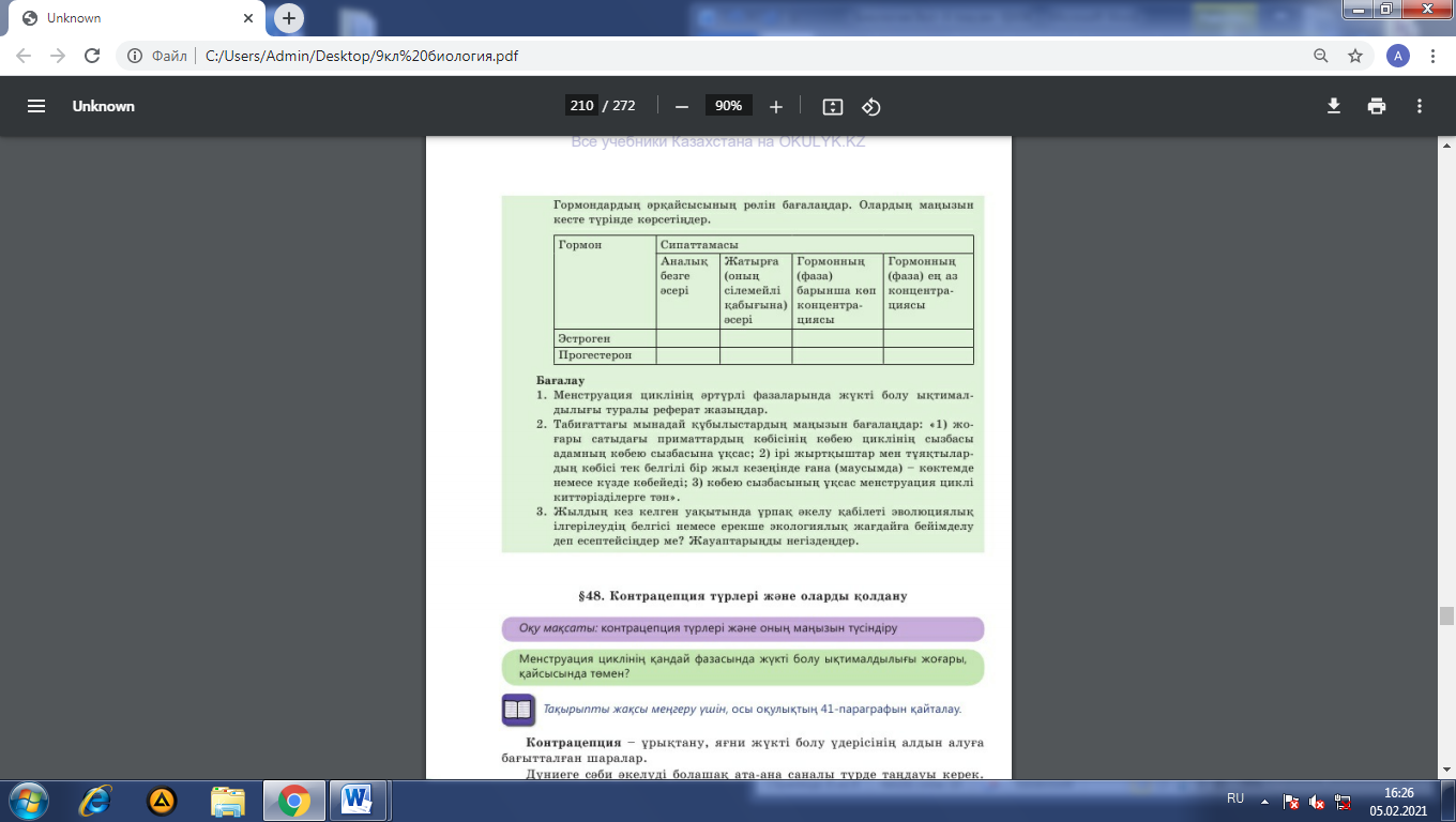 9.2.1.4 - менструалдық цикл мен экстроген және прогестеронның маңызын сипаттау |