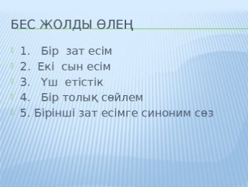 Тыңдалым,айтылым. Мәдени-культурный Отандық-отечественный Шетелдік-иностранец Шаһар-город Ұйымдастыр-организовать Әкімшілік-администрация Саяси-политический Жарыс-соревнование Алақан-ладонь Сәулетші-архитектор Көрермен-зритель Айтылым Сұрақтарға жауап беріңдер. *Астана туралы не білесің? *Астана қаласы қай жылдан бастап Қазақстан Республикасының астанасы болды? *Қандай атақты ғимараттар мен мәдени орындарды білесің? *Сен Астанада болдың ба? Жазылым Астана тақырыбына бес жолды өлең (синквейн) құрастырыңдар.