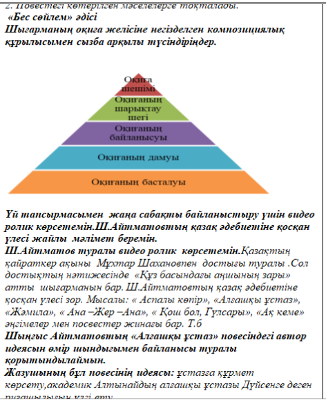 Сабақтың тақырыбы:Шыңғыс Айтматов. «Алғашқы ұстаз»повесі