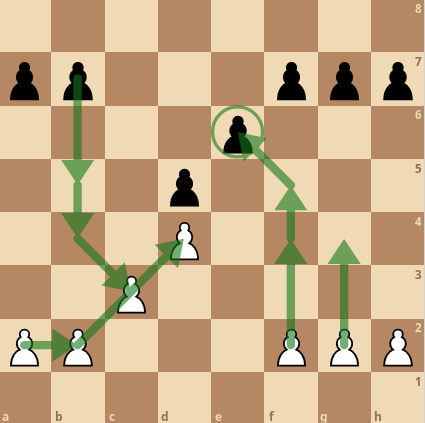 Пешкалар тізбегі - пешкалар бір-бірін қорғайды, тізбекті құрайды, ал қарсы жақтардың пешкалары жиі бір-бірімен жабылады. Мұндай жеткілікті ұзын пешка құрылымы әр жақтың ұзақ қашықтықтағы бөліктерінің мүмкіндіктері айтарлықтай шектелген позицияның жабық түрін анықтайды.