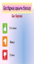 1.Тәртіп. 2.Талап. 3.Тыныштық. 4.Тазалық. 5.Татулық. Балалар ережені есімізге түсіріп, сыныптың тәртібін сақтап, оқып - білуге талаптанып, тыныштықты орнатып, тазалықты сақтап, бүгінгі күнімізді татулықпен өткізейік. 2.Жағымды көңіл-күйге келу. Тыныс алуға зейін қою. Баяу музыка қойылады. Мұғалім: Сіздерден аяқ-қолыңызды айқастырмай, түзу отыруыңызды өтінемін. Біз қазір тыныс алу жаттығуын жасаймыз. Тыныс алуға зейін қойған кезде, біздің ақылымыз дем алады. Ауаны ішке жұту кезінде тыныштық пен қуаныш қабылдаймыз. Демді сыртқа шығарған кезде өзіміздегі мазасыздықтарды сыртқа шығарамыз. Кәне, дайындалайық, балалар. Көзімізді жұмамыз..., арқамызды тіктейміз..., қолдарыңды тізеге қоюға болады... Д е м а л..... ш ы ғ а р... (жаймен 9-10 рет)немесе1..................2 |