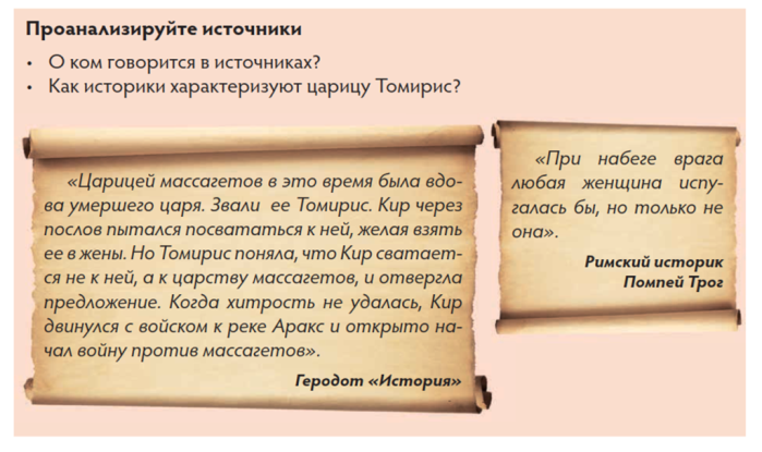 Узнают, как описывается образ Томирис в исторических источниках. |