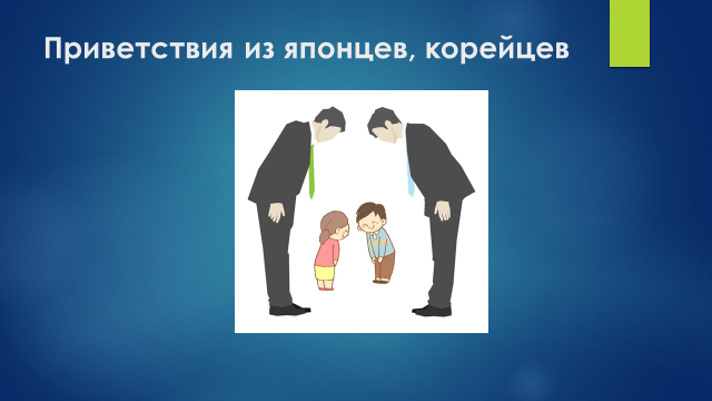 Придумать мини-сценку или жест, показывающий, как в этой стране приветствуют друг друга.
