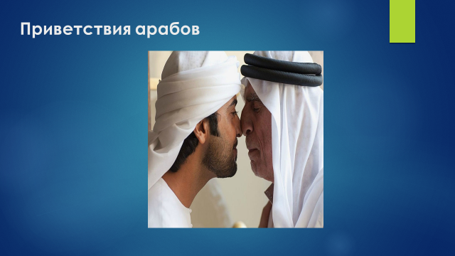 Арабские страны — объятия, поцелуи в щёку, тёплые слова.