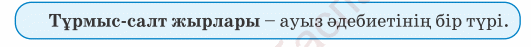 Мазмұнына қарап, өлең тақырыбын болжайды Тұрмыс-салт жырларымен танысады |